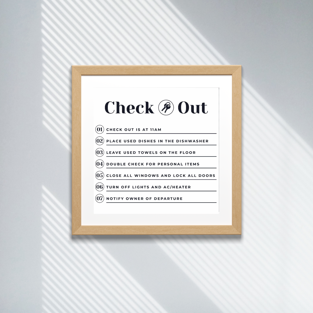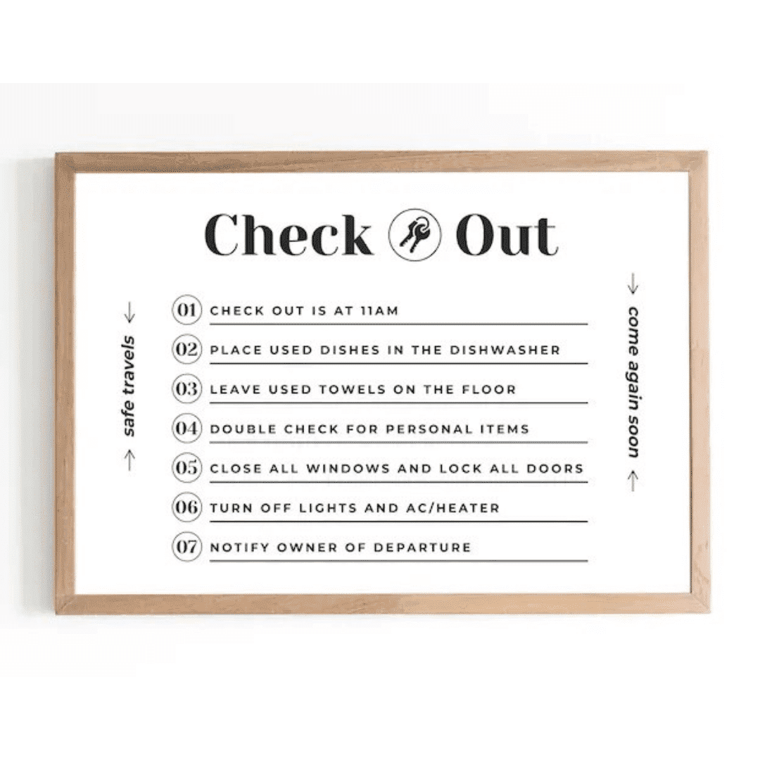 Make a statement in your rental with this practical Airbnb Check Out Sign.
